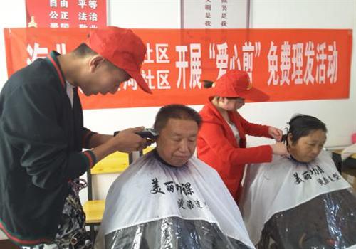 2016年10月10日,海北街道办事处狮城社区、黄河社区开展“爱心剪”免费理发活动。