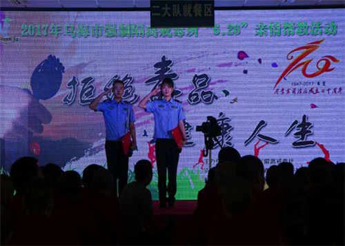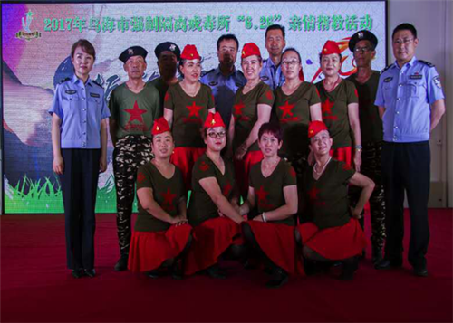 为纪念国际禁毒日,进一步促进社会和谐稳定,提高市民禁毒、防毒、反毒意识,6月16日由乌海市强制隔离戒毒所主办、海勃湾区禁毒办 海北办事处狮城社区协办、市老年学会鸿鹤艺术团参演,在强制隔离戒毒所开展了以“拒绝毒品 健康人生”为主题的亲情帮教活动。