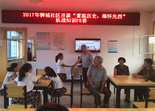 9月1日,狮城社区党委组织辖区内老党员和小学生开展了一场以“重温历史,缅怀先烈”为主题的抗战知识PK赛活动,旨在弘扬爱国主义精神和民族精神,纪念抗日战争胜利暨世界反法西斯战争胜利72周年。