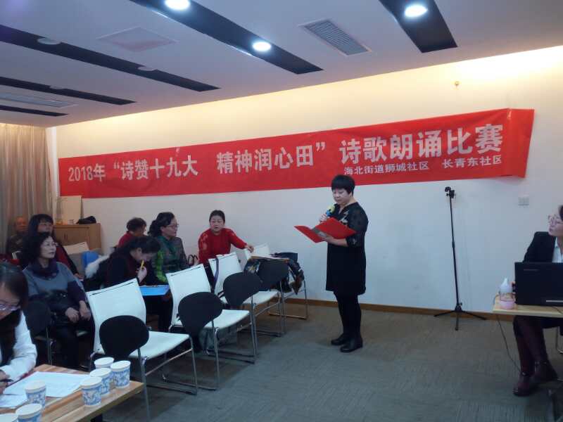 1月15日,为了更好地贯彻落实党的十九大精神,弘扬时代主旋律,海北街道狮城社区联合长青东社区举办了以“诗赞十九大,精神润心田 ”为主题的诗歌朗诵比赛。此次活动以新创作征集的十九大主题诗歌作品为主,突出宣传党的十九大精神,社区党员、居民、社区工作者们40余人参加了此次活动。