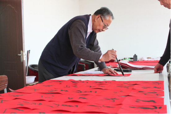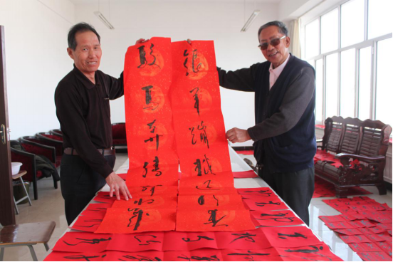 为深入开展中国梦主题教育活动,“骏马奔腾辞旧岁 银羊蹦越迎新春”。2月13日上午,乌海市老年书法协会地书组和狮城社区书画部书法爱好者在狮城社区书画室挥毫泼墨,为海北街道办事处狮城社区居民义务书写400多副对联,将新春的祝福融入对联创作中,表达对新年的期盼与向往。