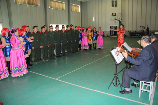 为深入开展中国梦主题教育活动,3月1日下午,海北街道办事处狮城社区慰问了辖区乌海市消防支队特警中队的全体官兵,还为全体官兵送去精彩的演出。文艺汇演全部由社区艺术团、辖区退体老年艺术家、辖区居民等亲情演出,节目丰富多彩,有流行歌曲《小苹果》,有军歌《打靶归来》,还有民族舞表演等等。为45名消防官兵名献上了浓浓的节日祝福!