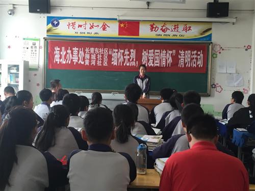 2016年4月5日上午,为切实培育和践行社会主义核心价值观,进一步加强中华民族优秀传统文化和革命传统教育,狮城社区、黄河社区、长青东社区联合乌海市海勃湾区第三中学的师生们,以清明节为契机,组织学生开展了“缅怀先烈,树爱国情怀”清明活动。学生们在老师的带领下,纷纷上台谈感想,讲故事,缅怀先烈丰功伟绩。