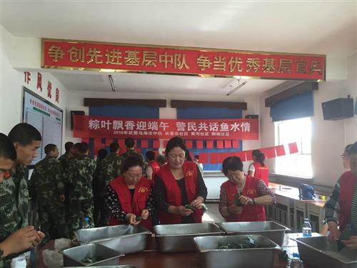 端午节即将来之临,为了欢庆传统节日,狮城社区联合长青东社区、黄河社区于6月4日上午在武警乌海中队举办了“粽叶飘香迎端午,军民共话鱼水情”端午节活动。