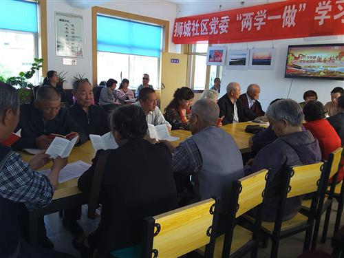 为更好地开展党员教育动员大会,5月4日,狮城社区党委组织辖区党员开展了“两学一做”学习教育活动,社区党员共36人开展学党章党规、学习习主席系列讲话和做合格党员学习教育活动。狮城社区党委副书记肖宁主持,现场所有党员重温了入党誓词并佩戴了党徽,狮城社区党委书记张优为社区党员宣读了2016年狮城社区开展《开展“两学一做”学习教育实施方案》和《“两学一做”集中学习教育安排》,通过此次学习,使与会党员充分体会到了《两学一做》的重要性,党员们表示今后一定要严格要求自己,积极学习并做好笔记,做合格党员。