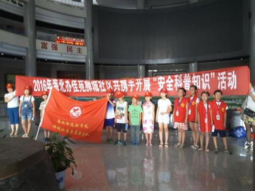 2016年7月28日狮城社区组织工作人员和志愿者带领未成年人在科技馆安全教育厅开展“安全科普知识”活动,对辖区内未成年人进行了安全知识讲解,并现场让孩子观看交通案例图像,体验交通安全,给孩子们生动的上了一堂安全知识课,让孩子们时刻牢记遵守交通规则,珍爱生命,健康安全的生活。