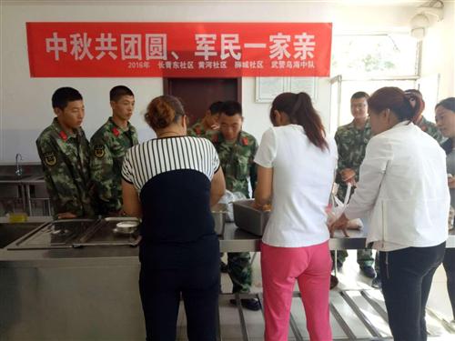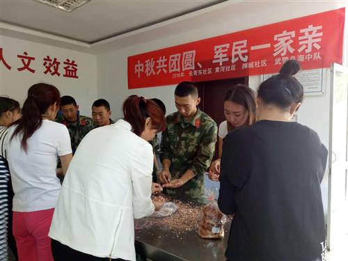 在中秋佳节来临之际,为使驻地官兵与社区居民共同分享佳节的快乐,狮城社区、黄河社区、长青东社区联合武警乌海中队举办了“中秋共团圆、军民一家亲”做月饼活动。