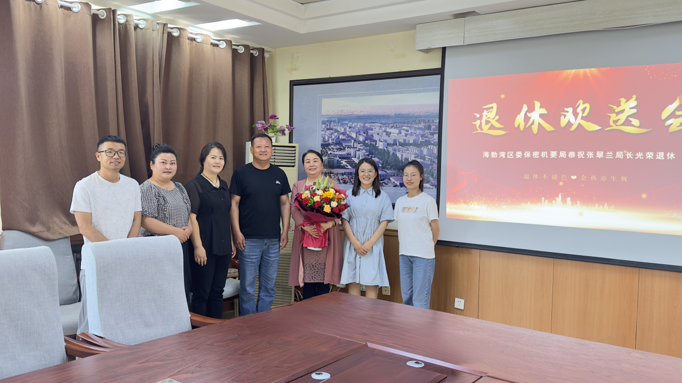 熠熠生辉流金屏幕书写着“退休欢送会——退休不褪色,余热亦生辉”,表达着对张翠兰同志的美好祝愿。仪式上,领导、同事们回顾着与张翠兰同志共同工作的点滴,犹如电影放映般,一帧一忆,一念一情。大家纷纷表示张翠兰同志工作认真负责,为海勃湾区建设作出颇多贡献,相信其退休不褪色,余热亦生辉。张翠兰同志向大家表示感谢与感动。感谢精心的准备,让自己的退休之日富有仪式,记忆深刻。感动济济一堂的领导、同事,让自己奋斗无悔。