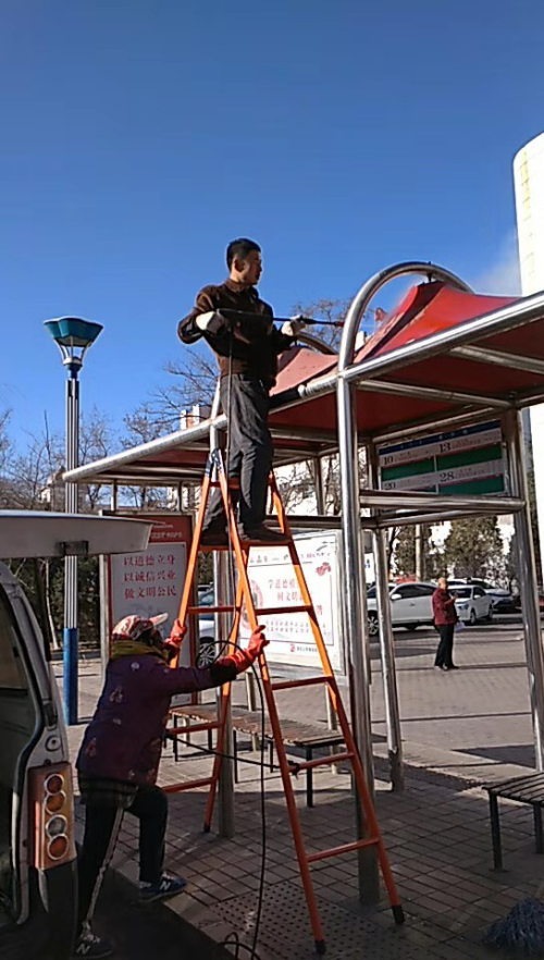 过完年后天气逐渐变暖,为了便于老百姓在公交站台等侯公交车时,有一个干净舒适的环境。这周开始宜和物业公司带领中河源社区社区3名贫困户,在海北街、新华街和海拉路将71个公交站台进行了五天的维护保洁。贫困户顾庆高兴地说:“这四天收入了750元,非常满意。因为她不仅有了就业的机会,还有时间照顾老人和孩子,这个收入也能贴补家用。”看到他们这么满意,驻村工作队每一个人的心里非常高兴。